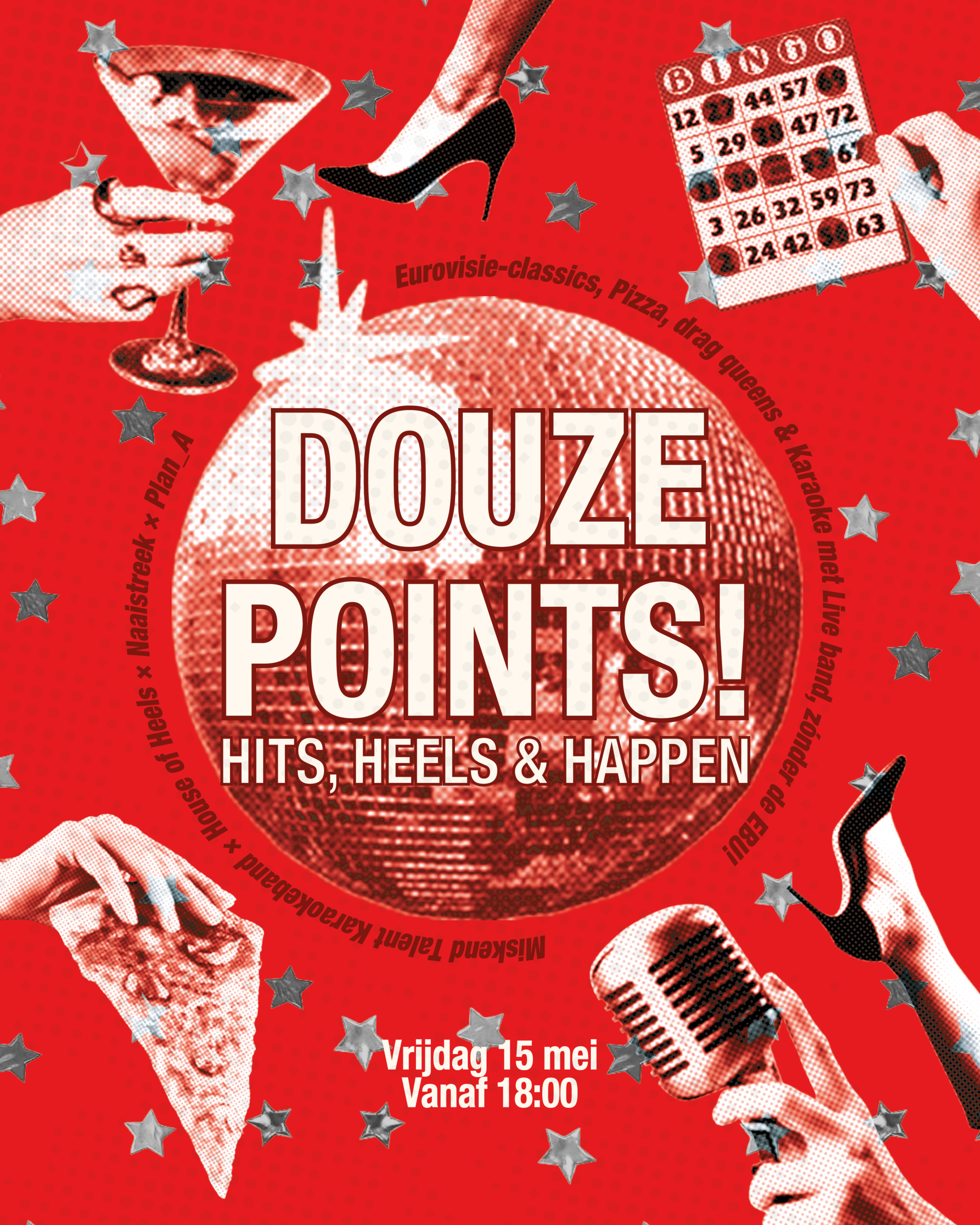 Van live karaoke en bingo tot DJ en dans, gehost door dragqueens en -kings… Douze Points! heeft het allemaal. Zing je de longen uit je lijf met legendarische Songfestivalhits (of nummers die dat eigenlijk hadden moeten zijn)? Schrijf je in bij het Dragloket en schitter achter de microfoon met de liveband van Miskend Talent! Of ga je liever voor de hoofdprijs tijdens het bingo-diner? Eén avond, volledige show, heerlijke shared pizza en hapjes – en dat alles volledig zonder de EBU.